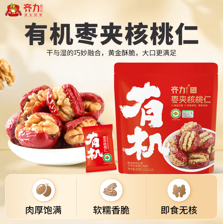 齐力有机枣夹核桃仁200g |