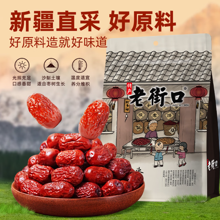 老街口零食新疆灰枣500g |