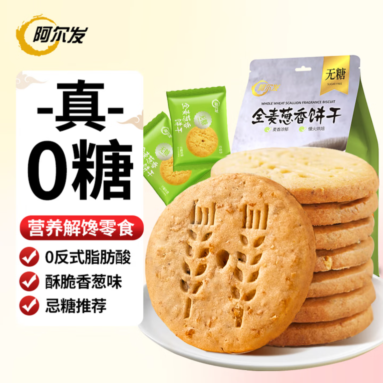 阿尔发无糖全麦葱香味饼252g |
