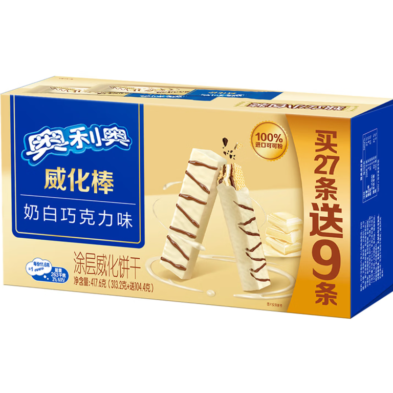 奥利奥威化棒饼干27+9条奶白巧克力味417.6g |