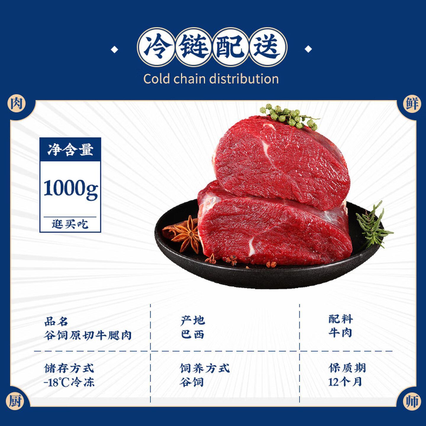肉鲜厨师 谷饲原切牛腿肉 净重2斤 新鲜冷冻大块牛肉前后腿火锅食材 |