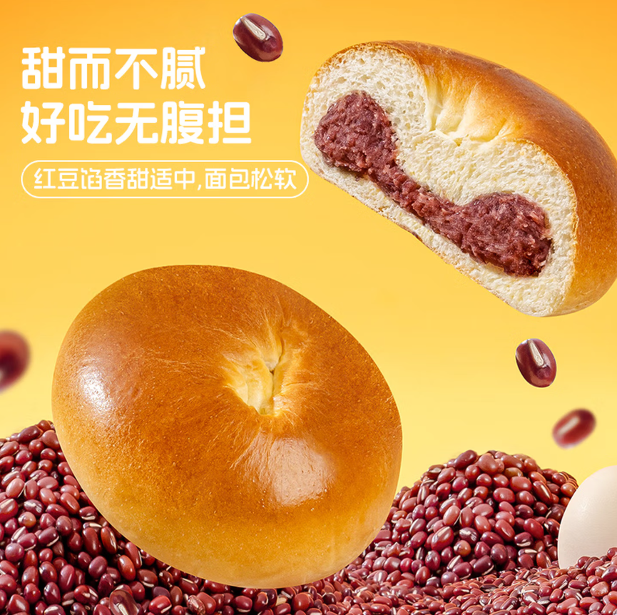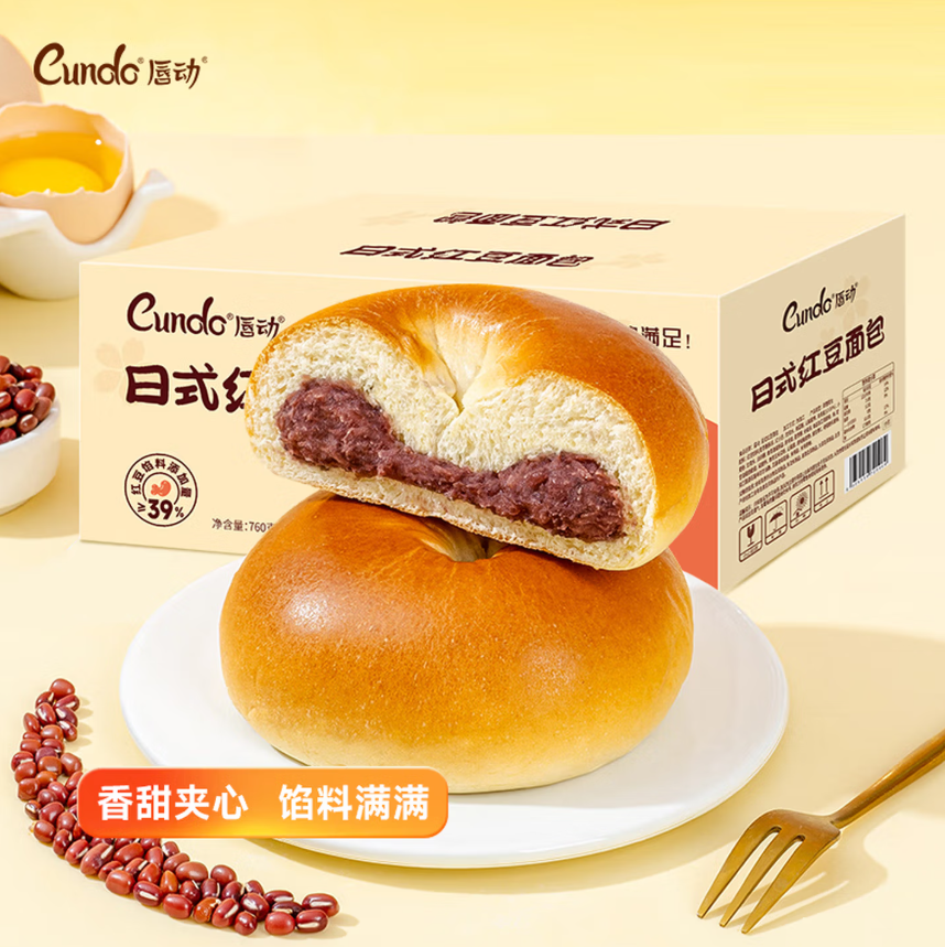 唇动红豆面包早餐零食760g |