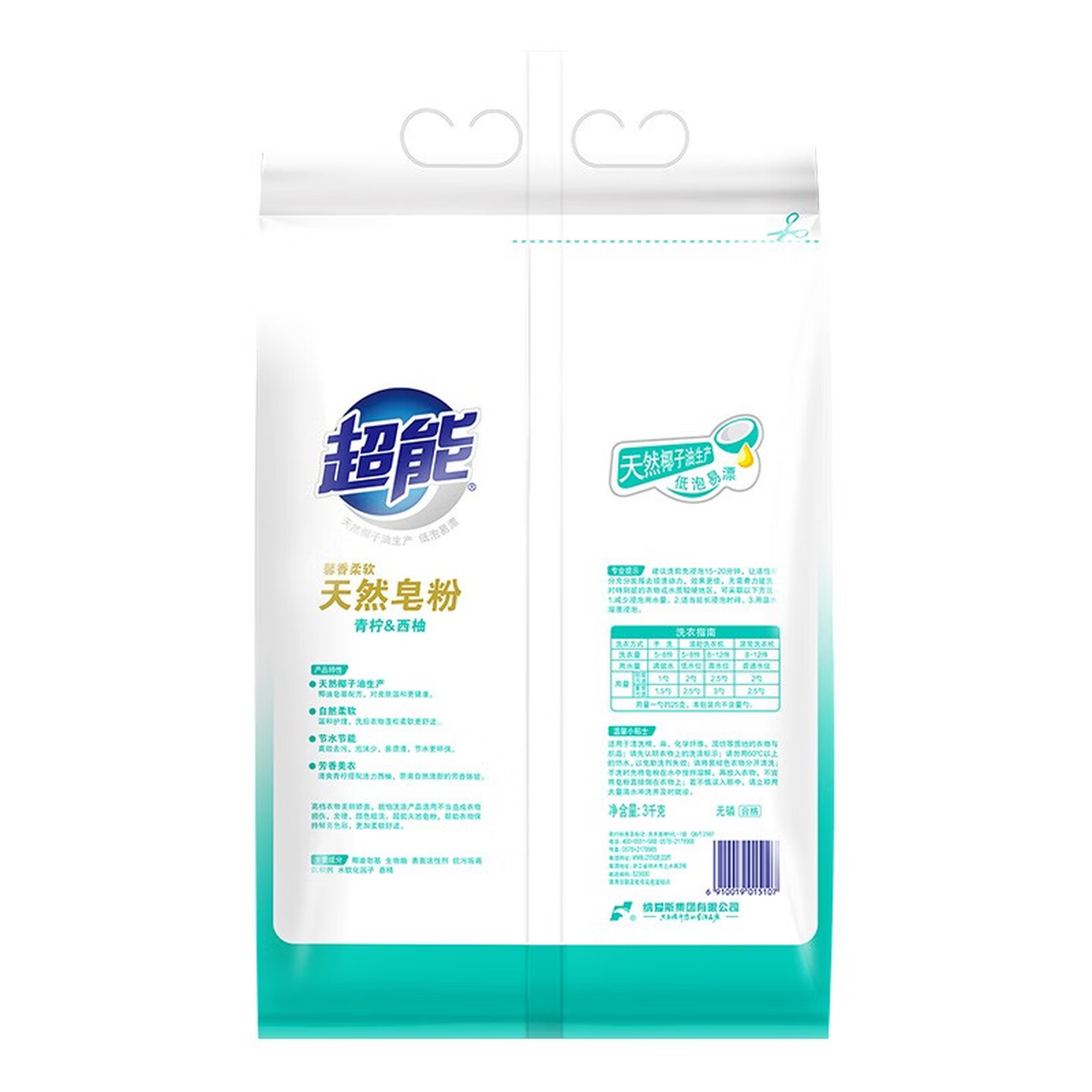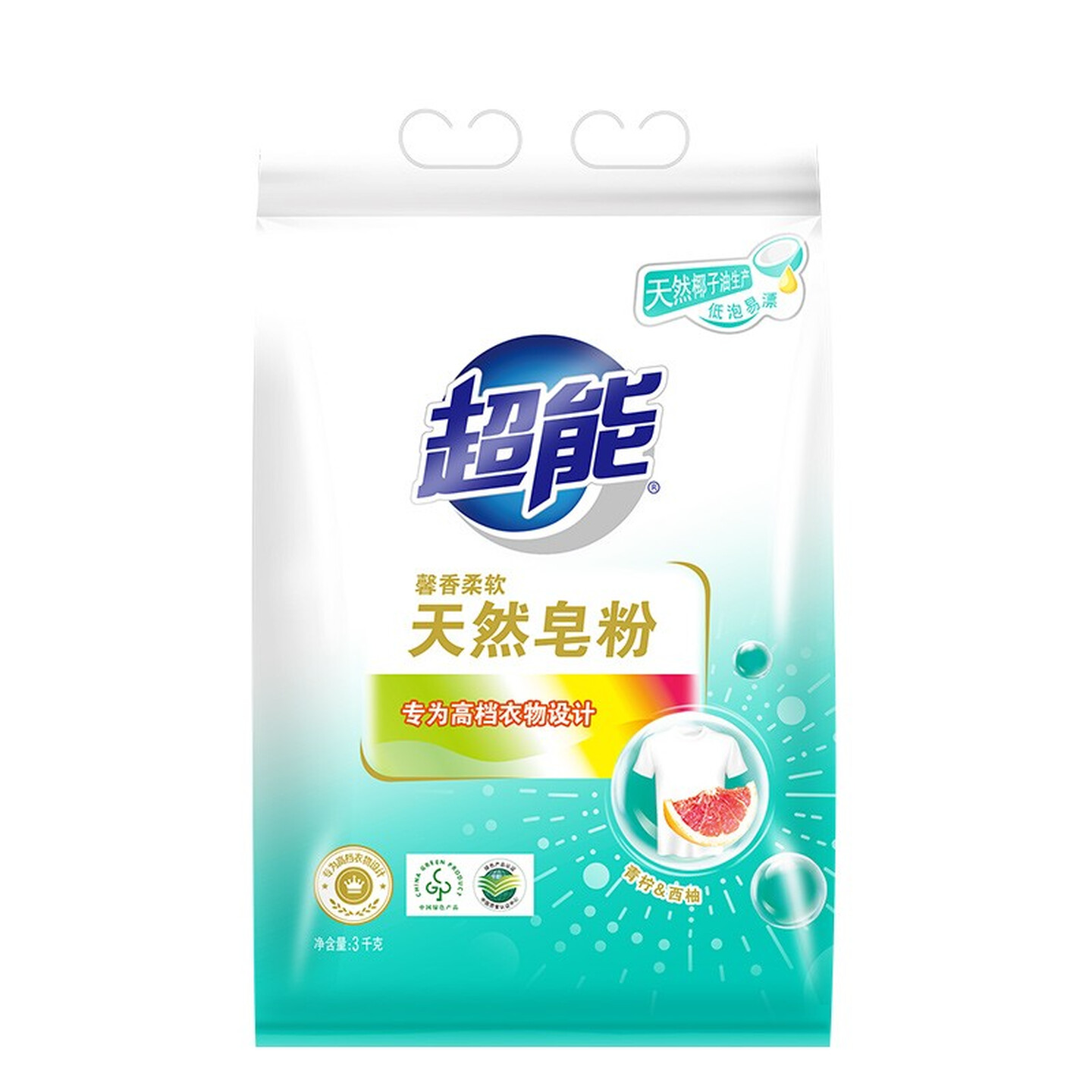 超能天然皂粉洗衣粉6斤馨香柔软青柠西柚 |