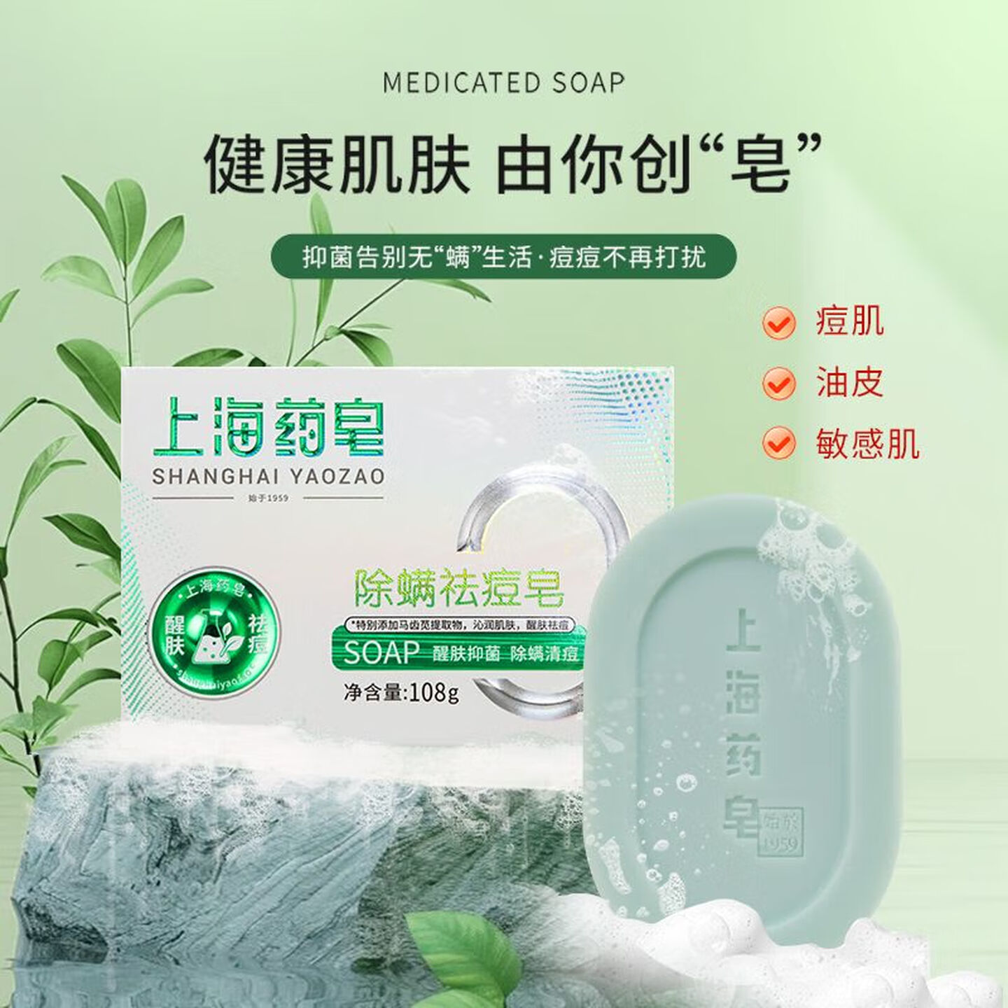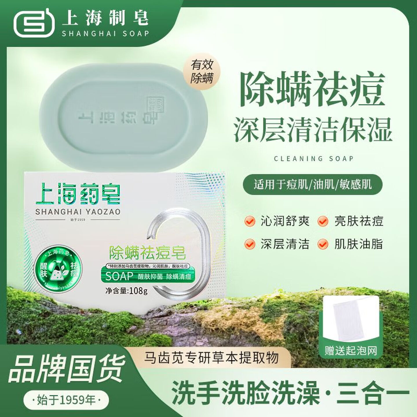 上海药皂除螨祛痘皂肥皂108g |