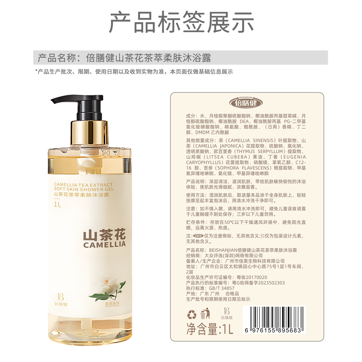 倍膳健山茶花氨基酸沐浴露1L |
