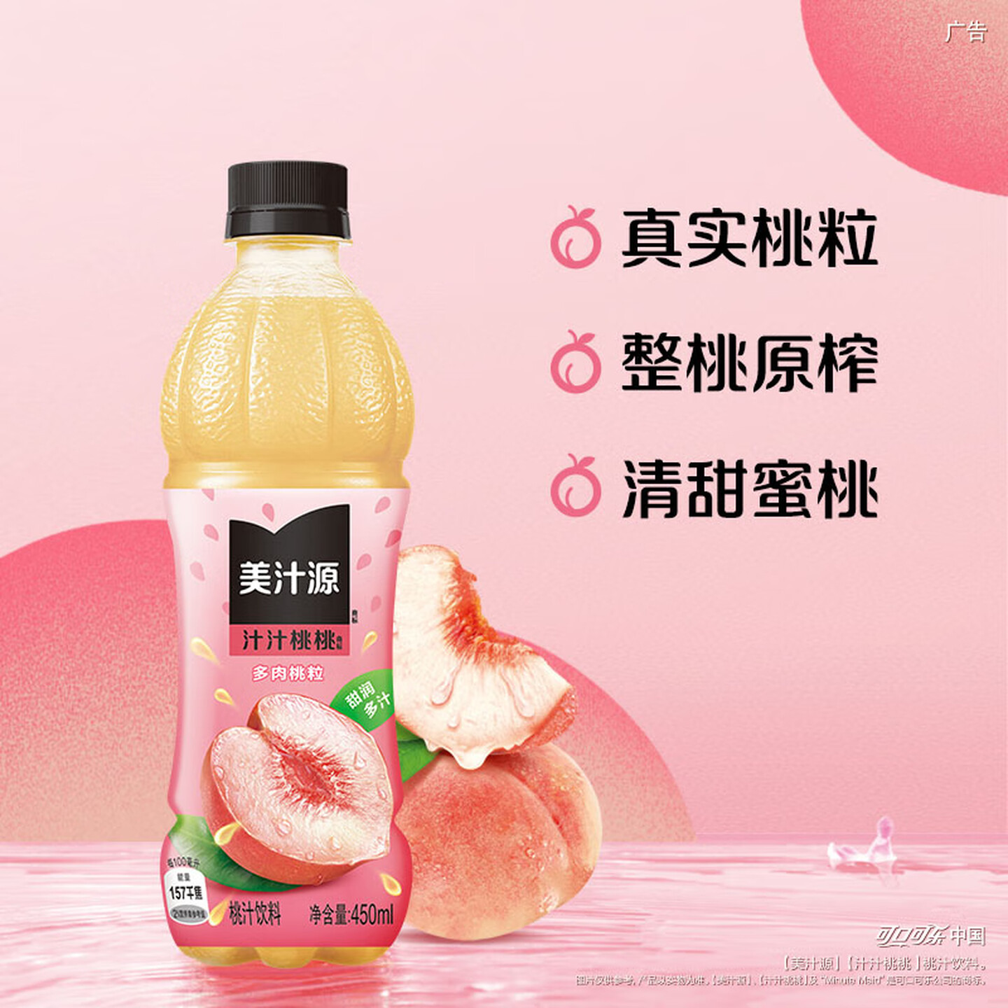 可口可乐美汁源汁汁桃桃饮料 420/450ml |