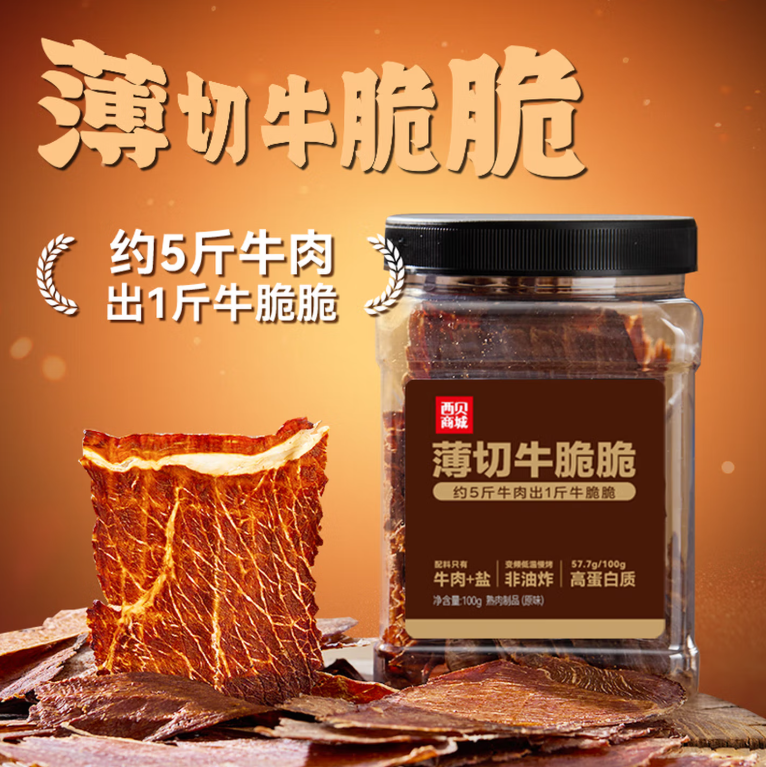 西贝莜面村 原味风干牛肉干薄切牛脆脆100g |