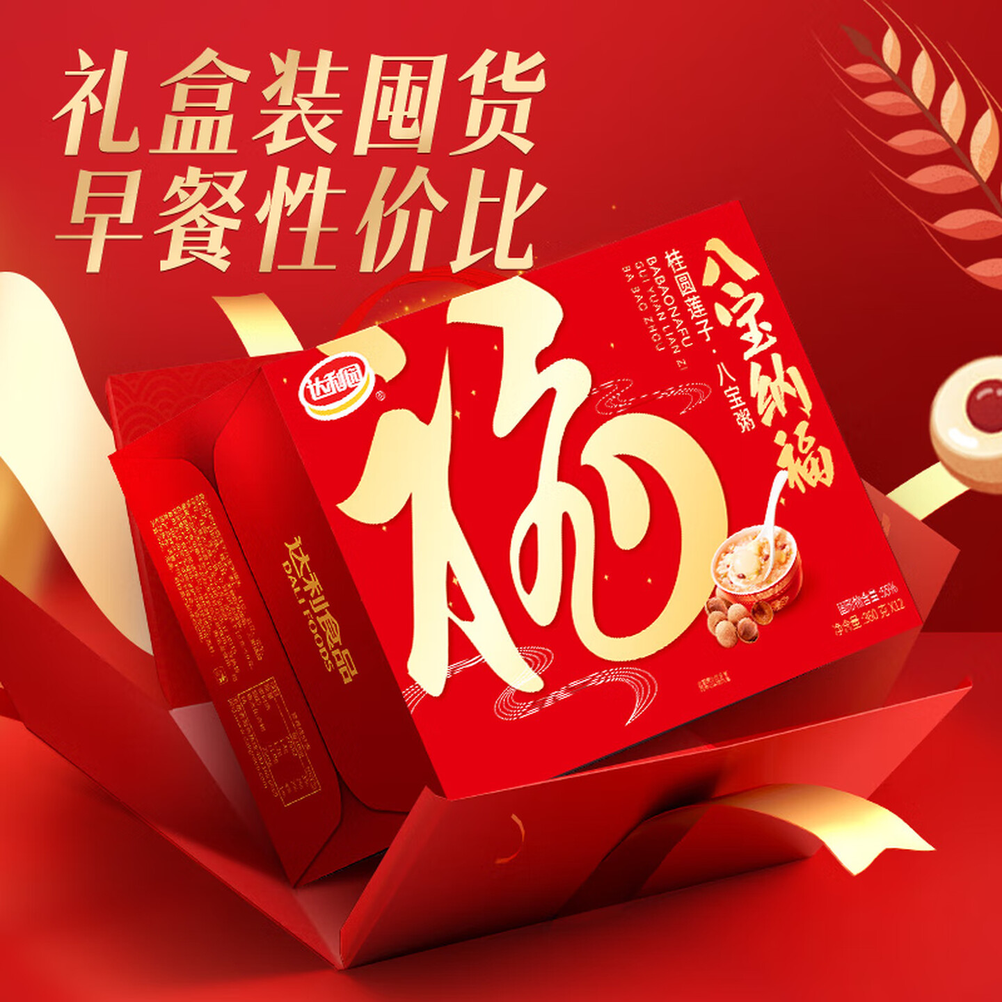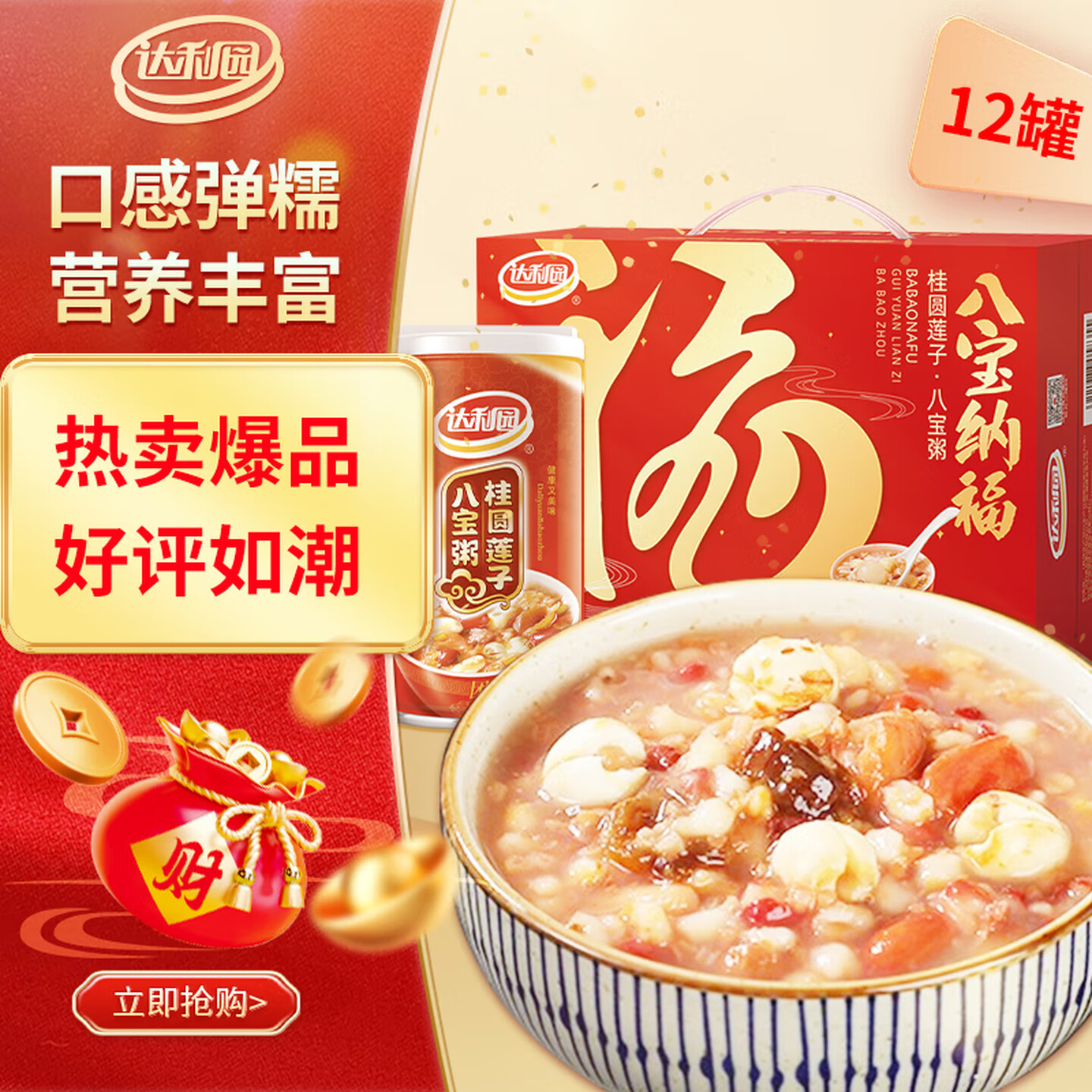 达利园桂圆莲子八宝粥速食早餐粥即食360g*12罐 即食粥 |