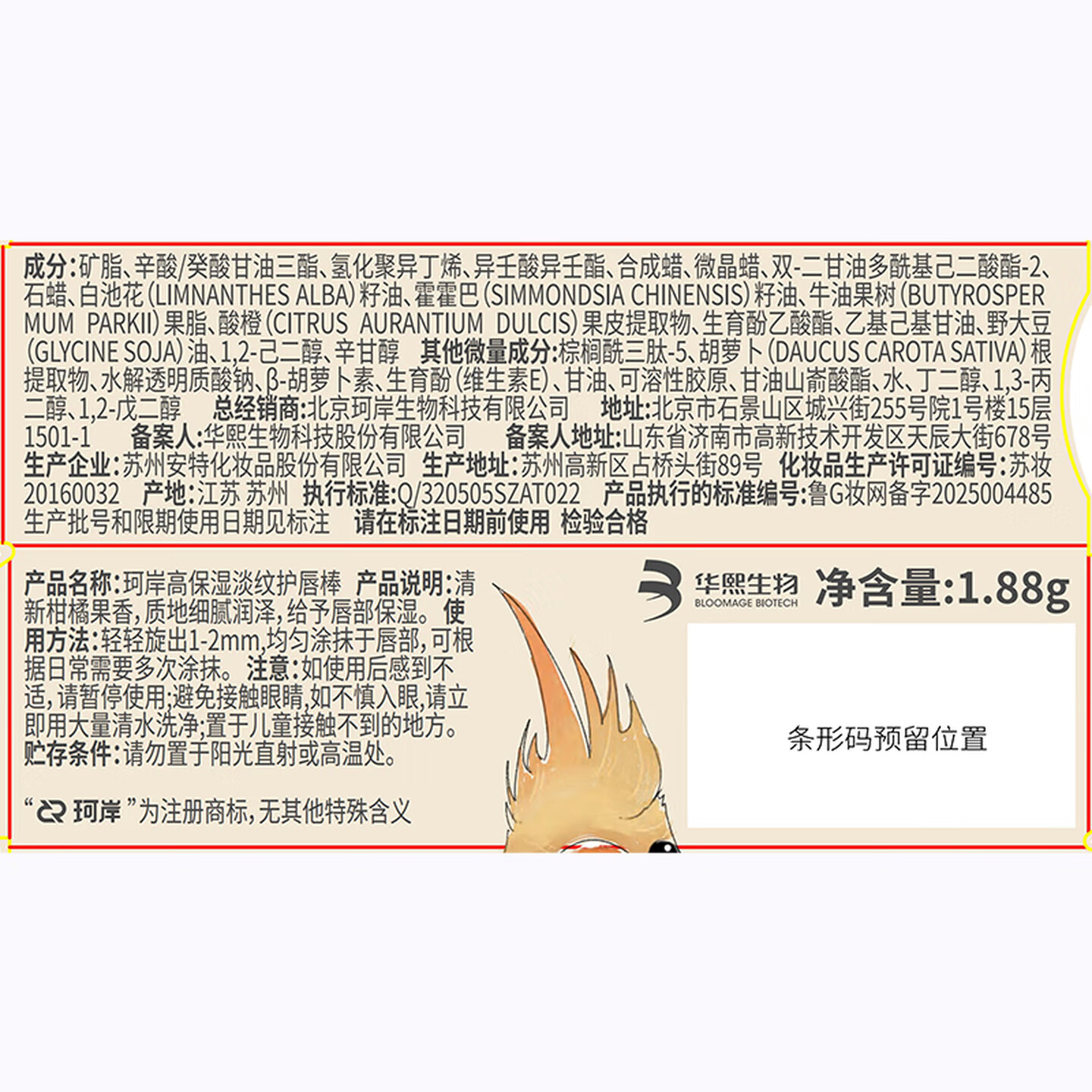 珂岸男士润唇膏凡士林唇膏1.88g |