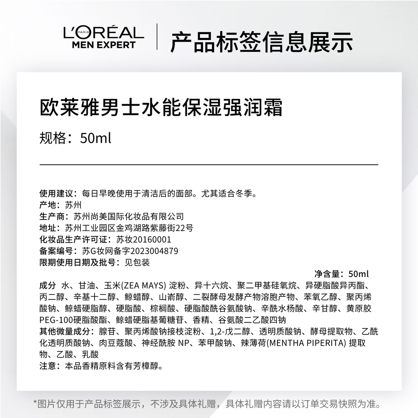 欧莱雅男士水能强润霜50ml脸手霜 |