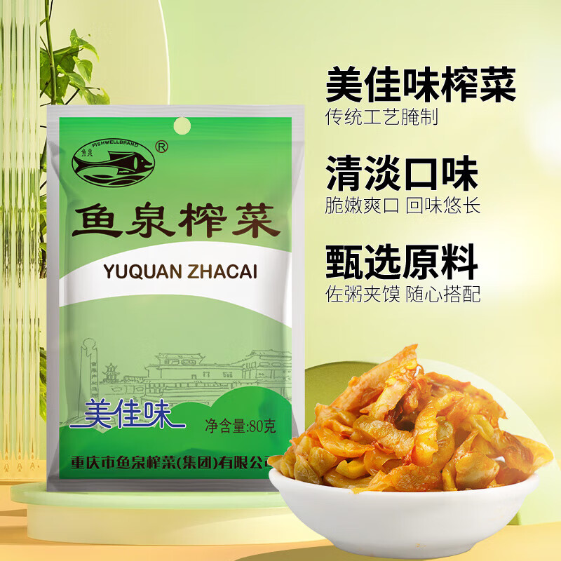 鱼泉榨菜清淡美佳味榨菜丝 80g*10袋 |