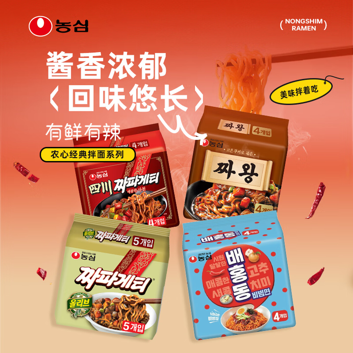 农心韩国进口炸酱面韩式甜辣拌面炸酱面140g*5连包 |