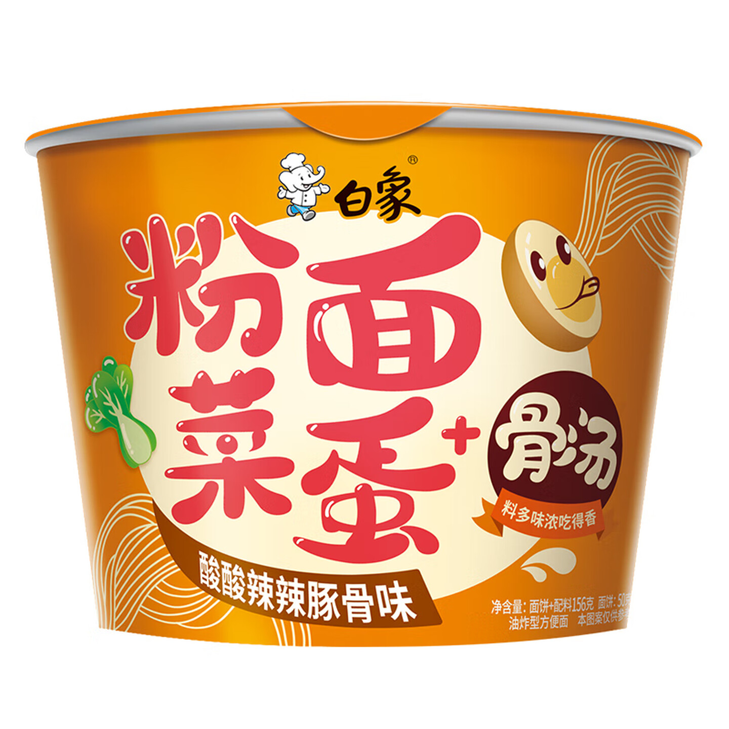 白象粉面菜蛋酸辣猪骨味泡面粉丝卤蛋156g*12桶 即食面 |