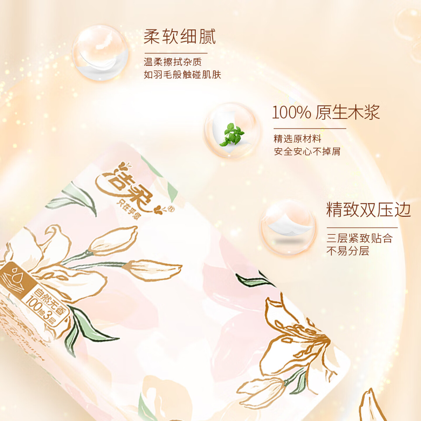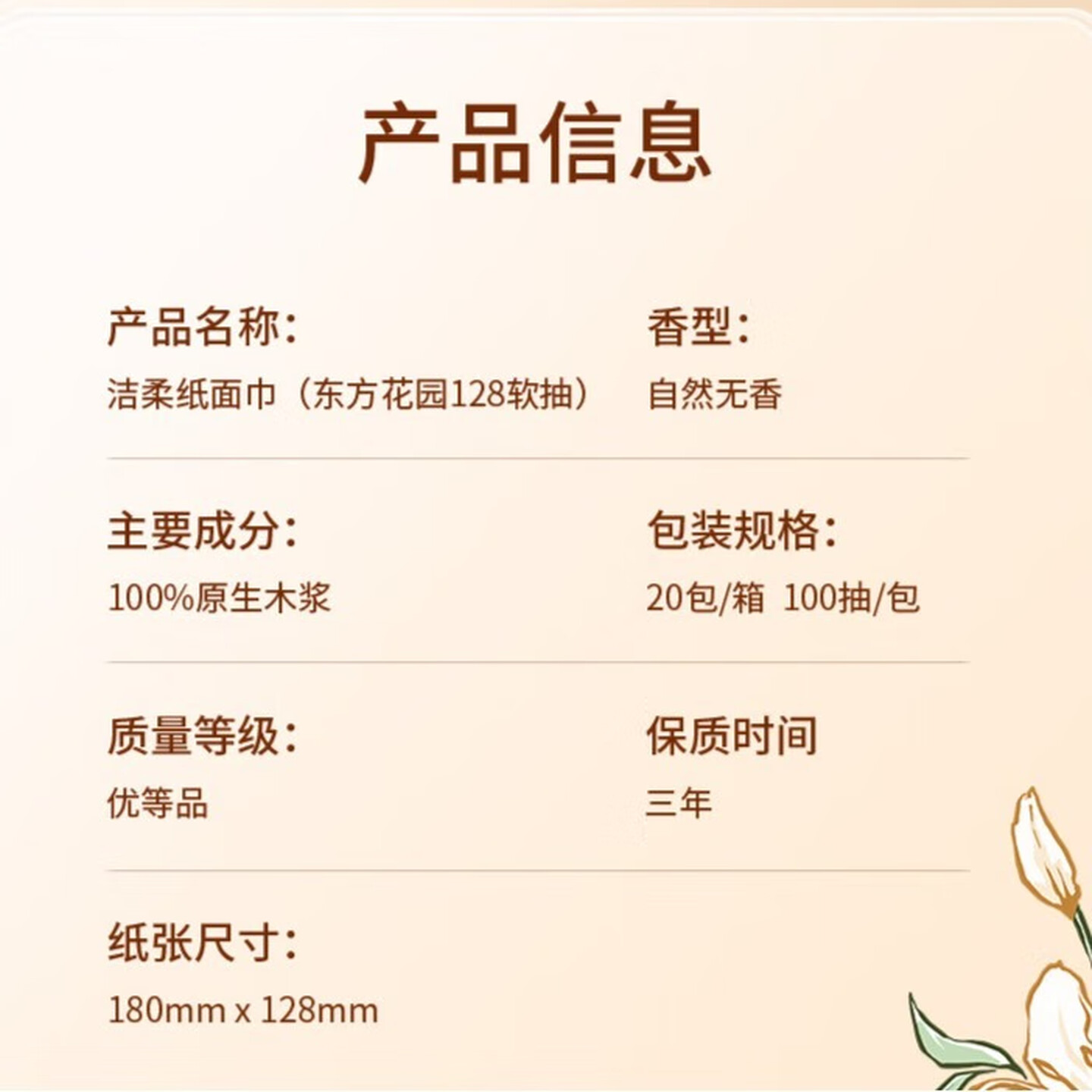 洁柔抽纸 繁花系列3层100抽*20包 |