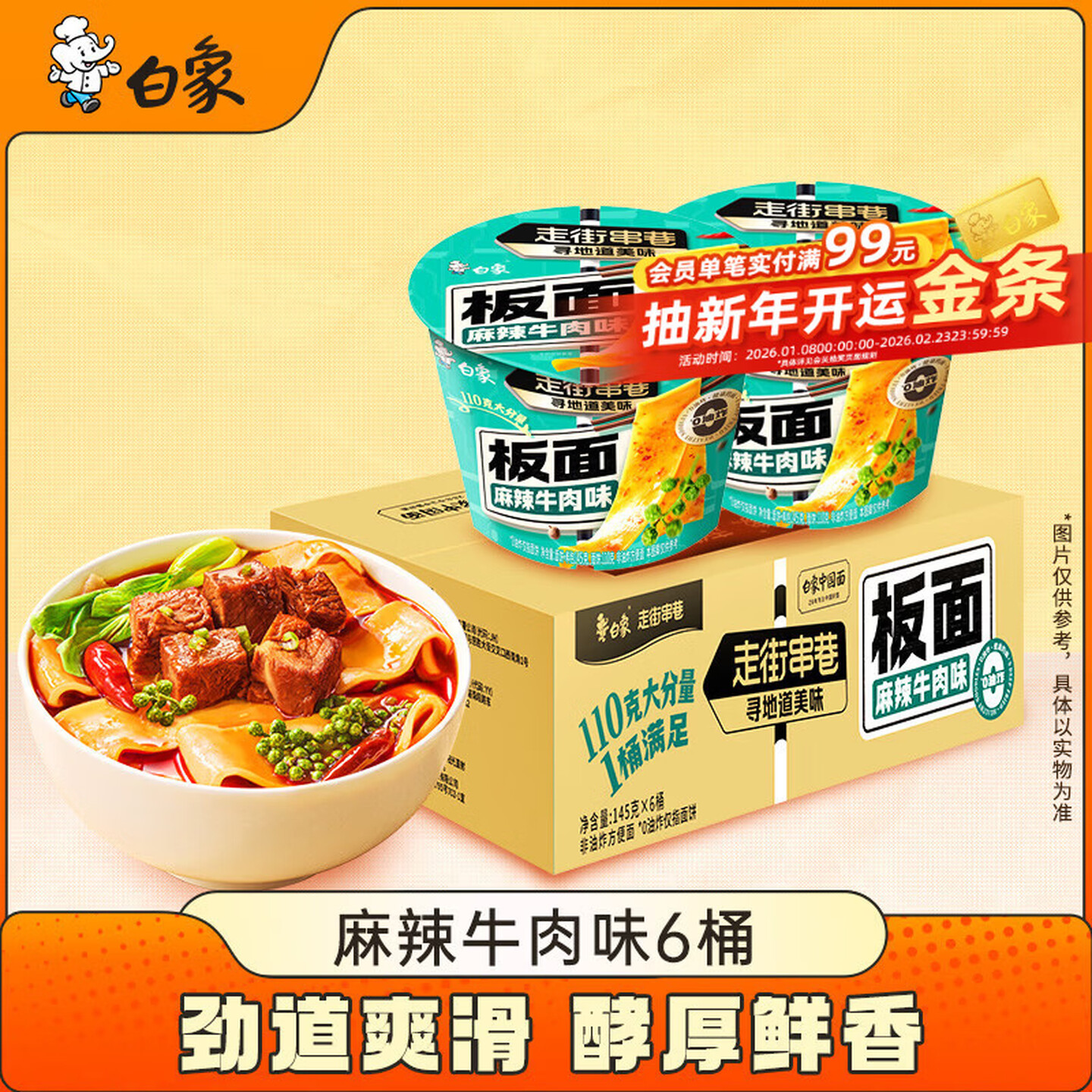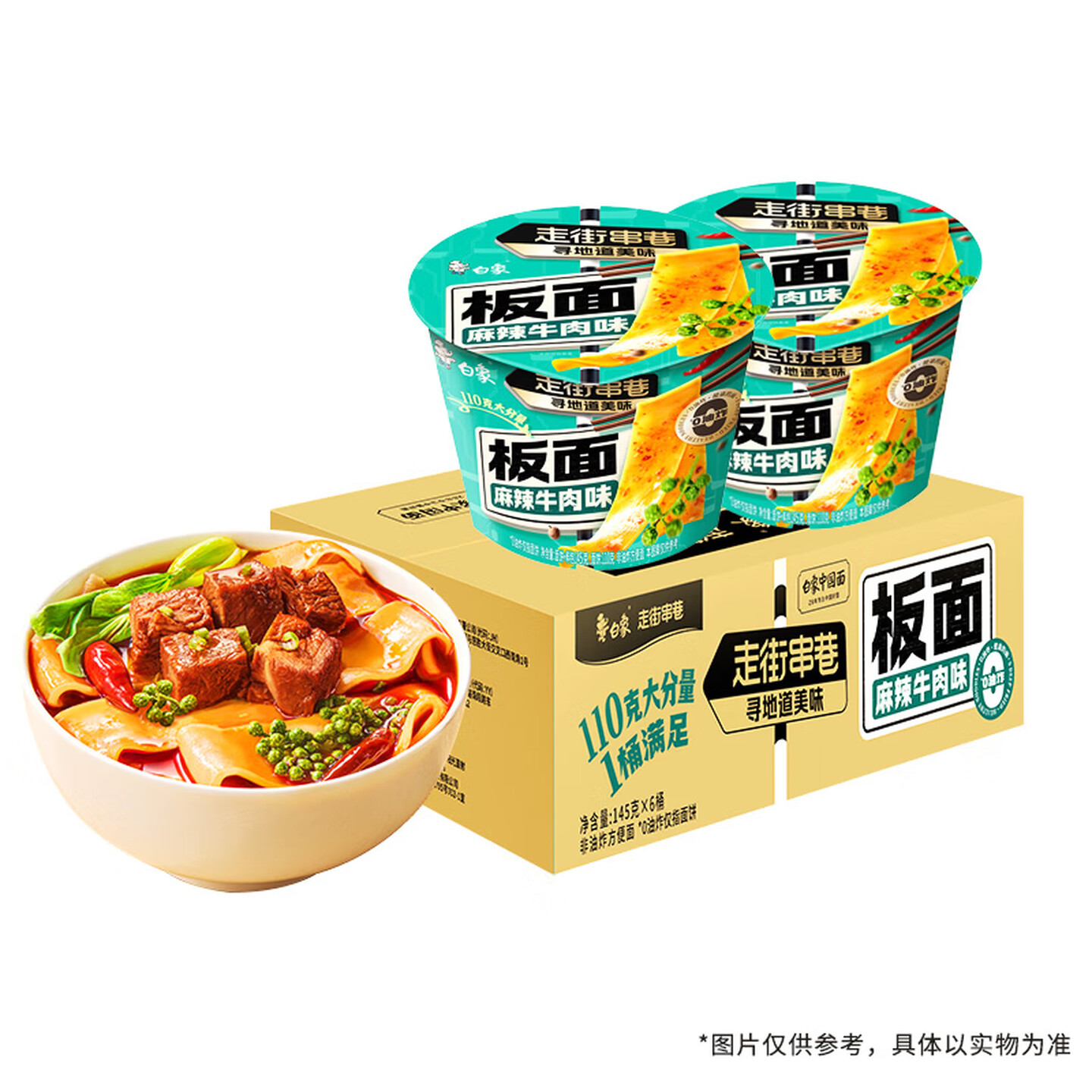 白象 方便面 走街串巷麻辣牛肉味板面145g*6桶 即食面 |