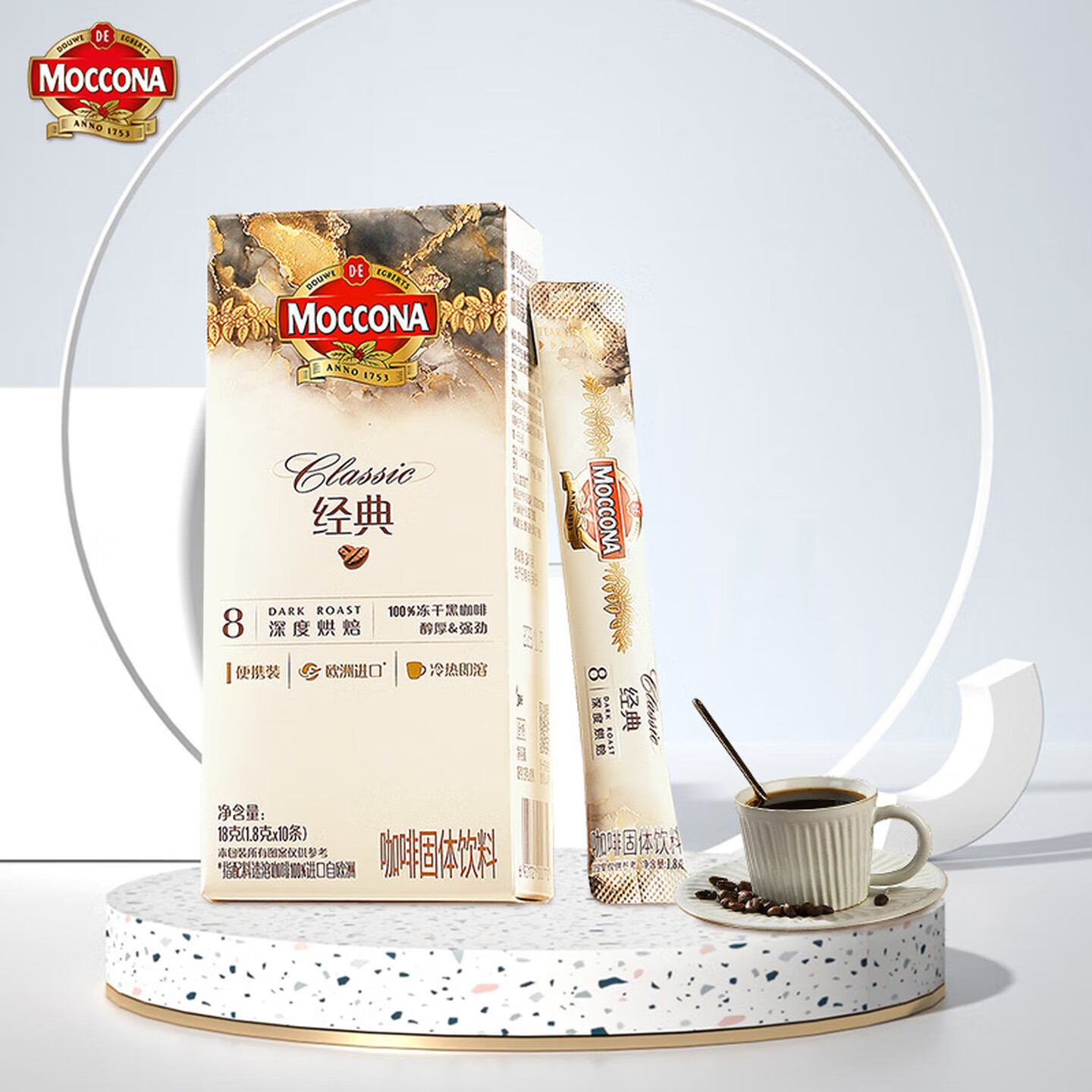 摩可纳(Moccona)经典8号冻干速溶黑咖啡1.8g*10条 |