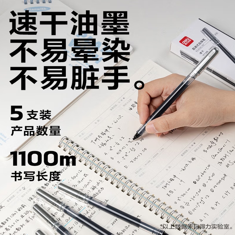 得力全针管中性笔【升级款】0.5mm黑5支 |