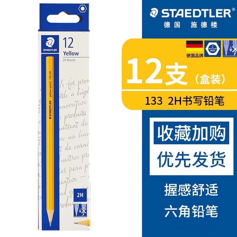 施德楼防断易削铅笔2H12支 |