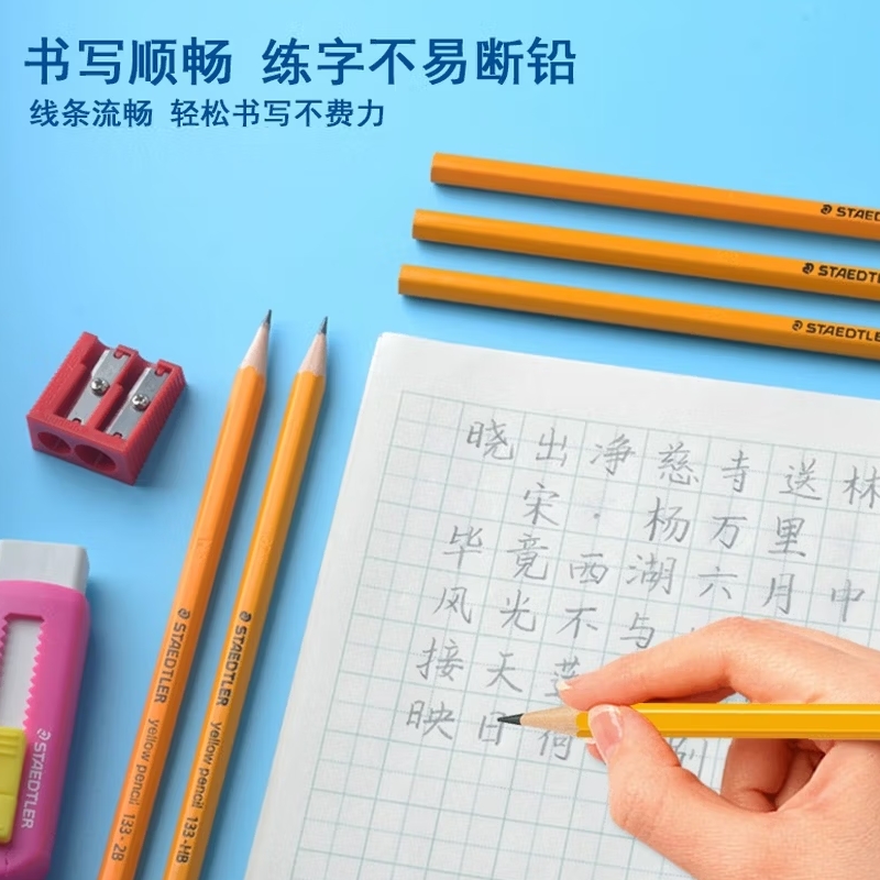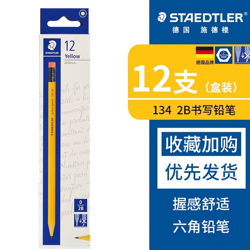 施德楼六角杆2B铅笔(带橡皮头)12支 |
