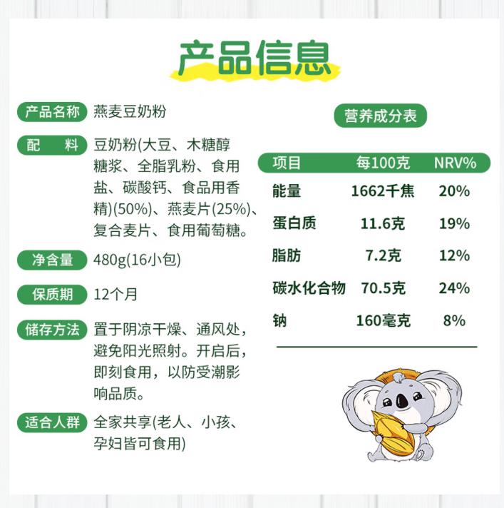 金日禾野燕麦豆奶粉480g |