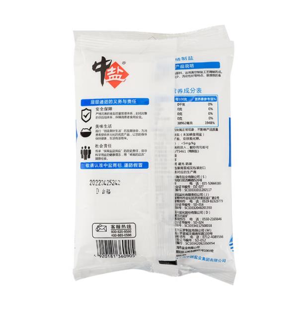 中盐 精制盐 未加碘 500g |