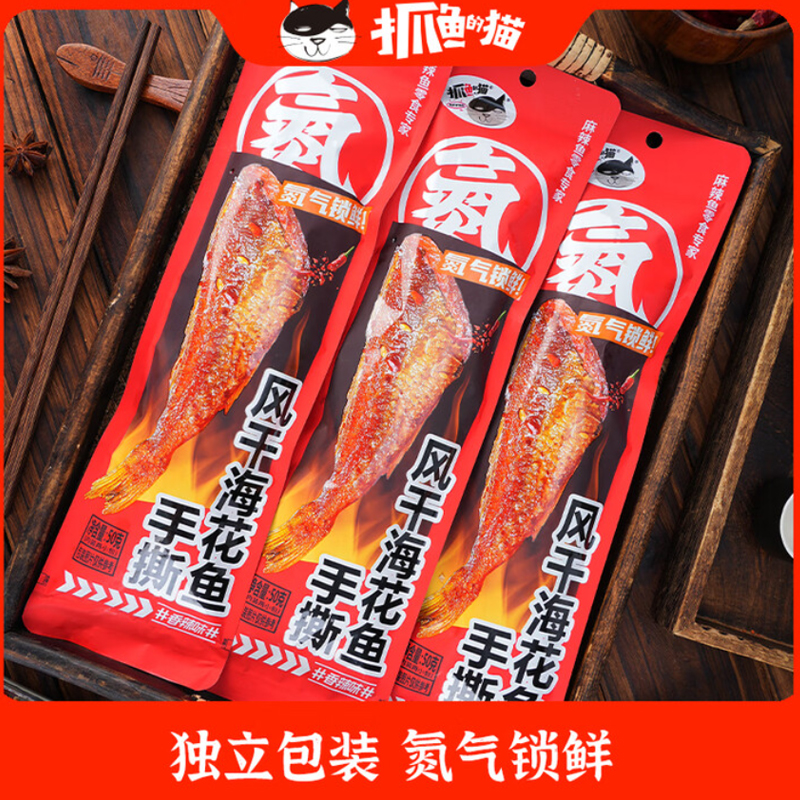 抓鱼的猫手撕风干海花鱼50g |